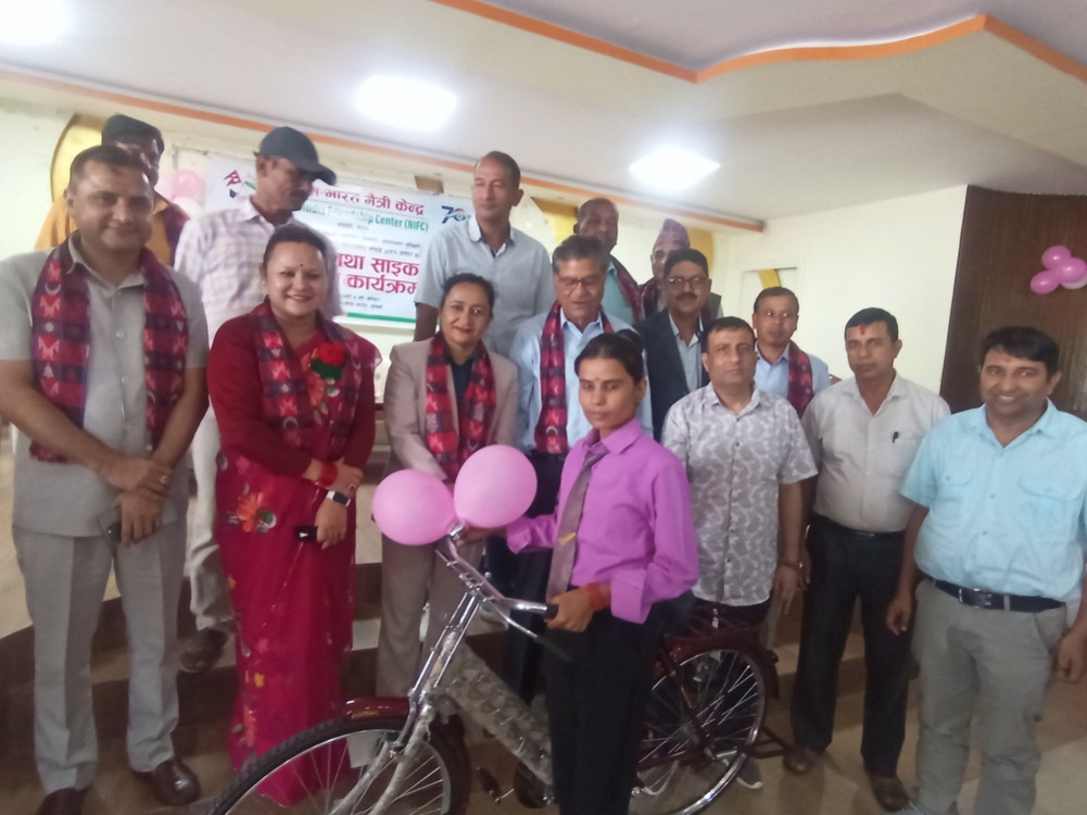 नेपाल–भारत मैत्री केन्द्रले रुपन्देहीको लुम्बिनी सांस्कृतिक नगरपालिकाबाट एसईई उत्तीर्ण १ सय १ छात्रालाई शनिबार साइकल वितरण गरेको छ ।जिल्लाको ग्रामीण क्षेत्रबाट २०८१ सालको एसईई उत्तीर्ण छात्रालाई प्रोत्साहन गर्ने उद्देश्यले साइकल वितरण गरिएको केन्द्रले जनाएको छ । यसपाली उक्त नगरपालिकाबाट १ सय ९४ जना छात्राले एसईई उत्तीर्ण गरेका थिए ।तीमध्ये आवश्यकता हेरी भारतीय स्वतन्त्रता दिवसको अवसरमा एक सय छात्रालाई साइकल वितरण गरिएको केन्द्रका अध्यक्ष सिद्वार्थ अग्रवालले जानकारी दिए । कार्यक्रममा लुम्बिनी सांस्कृतिक नगरपालिकाकी प्रमुख प्रशासकीय अधिकृत तारा ज्ञवालीले उत्कृष्ट नतिजासहित उत्तीर्ण छात्राका लागि साइकल वितरण गरिएकोमा केन्द्रलाई धन्यवाद दिइन् । उत्कृष्ट नतिजा हासिल गर्ने