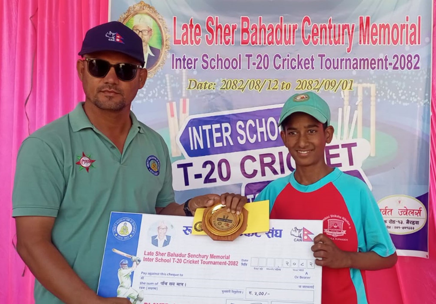 लुम्बिनी शिक्षा निकेतन र रुपन्देही लीलाराम मावि भैरहवामा जारी स्वर्गीय शेरबहादुर सेन्चुरी स्मृति अन्तरविद्यालय टी–२० क्रिकेट प्रतियोगितामा सेमिफाइनल प्रवेश गरेका छन।् आइतबार भैरहवास्थित सिद्धार्थ क्रिकेट मैदानमा भएको खेलमा लुम्बिनीले जेसिज बोर्डिङ सेकेन्डरी स्कूललाई २९ रन र लीलारामले स्प्याङ्गल स्कूललाई १ सय ४१ रनले पराजित गर्दै सेमिफाइनल यात्रा पक्का गरेका हुन् ।टस हारेर ब्याटिङको निम्तो पाएको लुम्बिनी शिक्षा निकेतनले ६ विकेट गुमाएर १ सय २७ रन बनायो । उसका लागि बासुदेव यादवले ४४, जाभेद खानले ३२, अलिउद्दिन खानले १८ र आजाद खानले नटआउट १० रन बनाए । बलिङमा जेसिजका आमोद बस्यालले २ तथा शिशिर घिमिरे र प्रथम जीएमले १–१ विकेट लिए ।